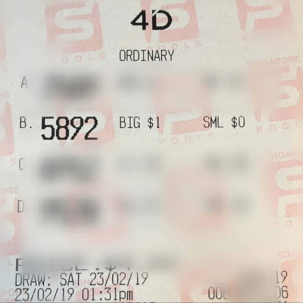 I have provide the online ticket attached in the earlier email. Bought online from singaporepools website. First time buy and hit 1st prize. Bought system for the number.